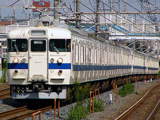 東海道線の朝ラッシュ時の混雑に対応すべく3扉車の111系が登場したが、後年にモーター増強版として製造されたのがこの車両。全盛期には本州各地で見られ、JR東日本では東海道線と横須賀線を中心に投入された。新型車投入後もファンには高い人気を博したが、東海道線からは2006年に引退した。